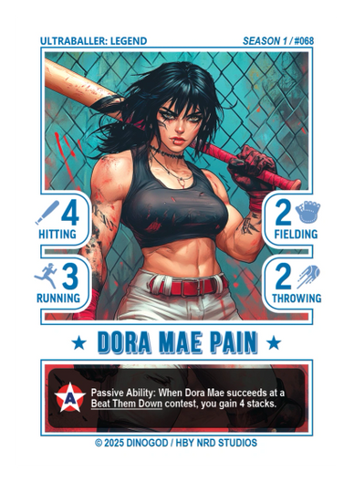 “A Pioneer of the game, Catalina was the first Ultraballer to enter the Forever Loop. Many say that she is the divine champion of the Baseball God.